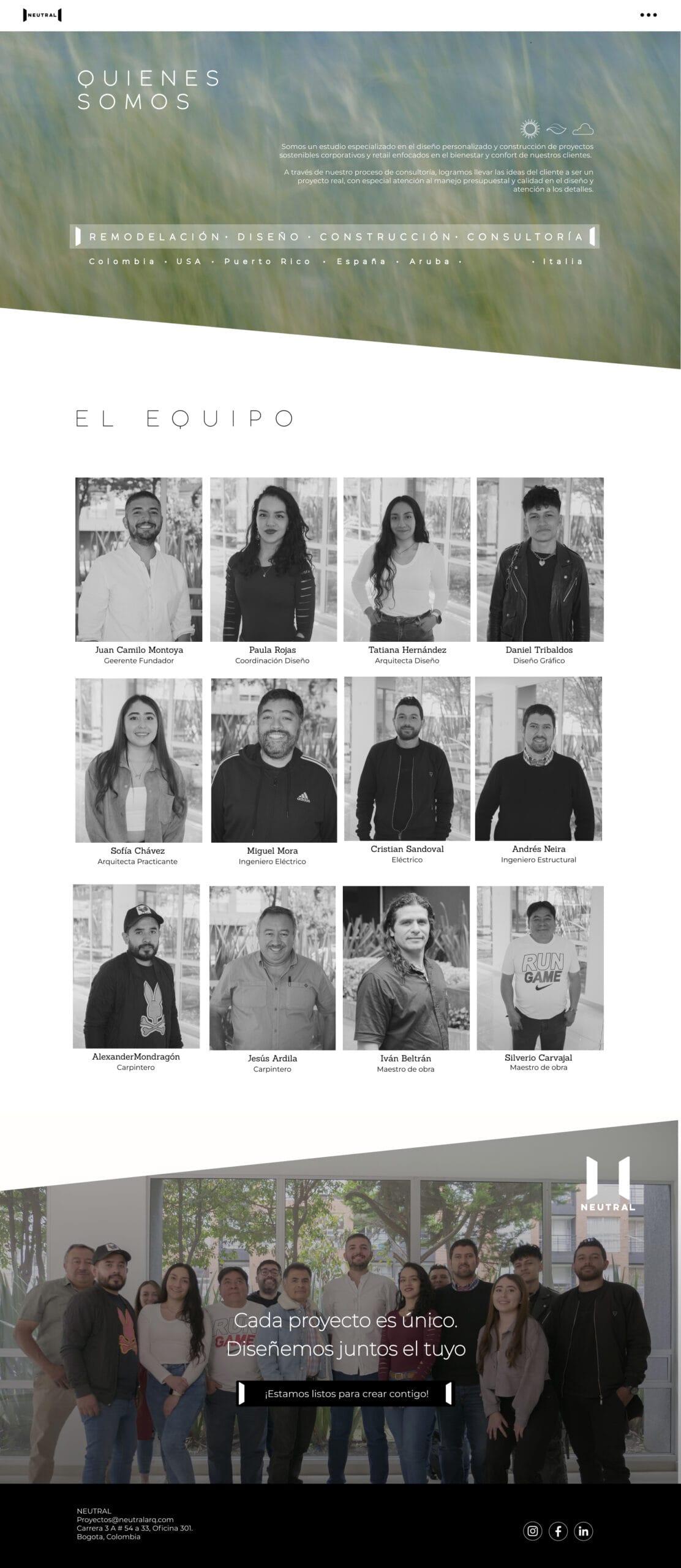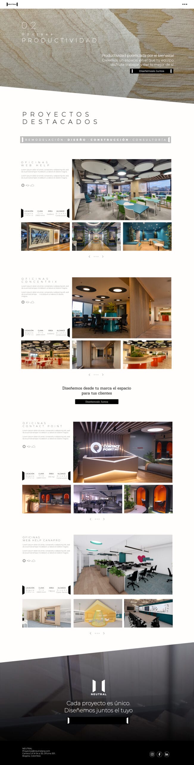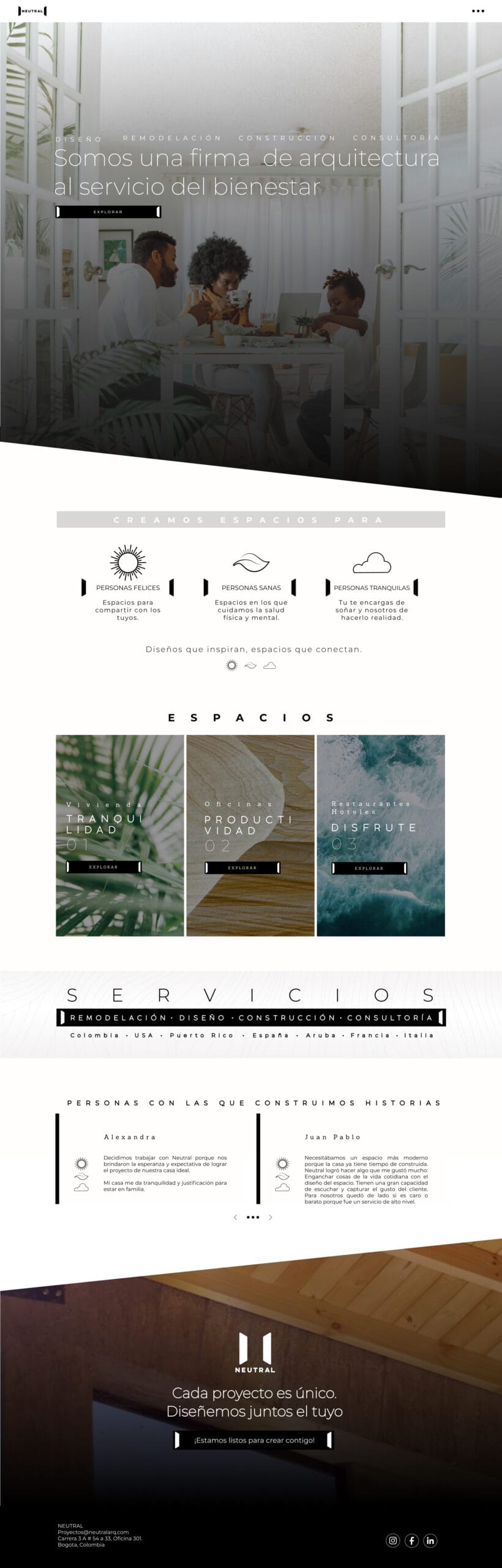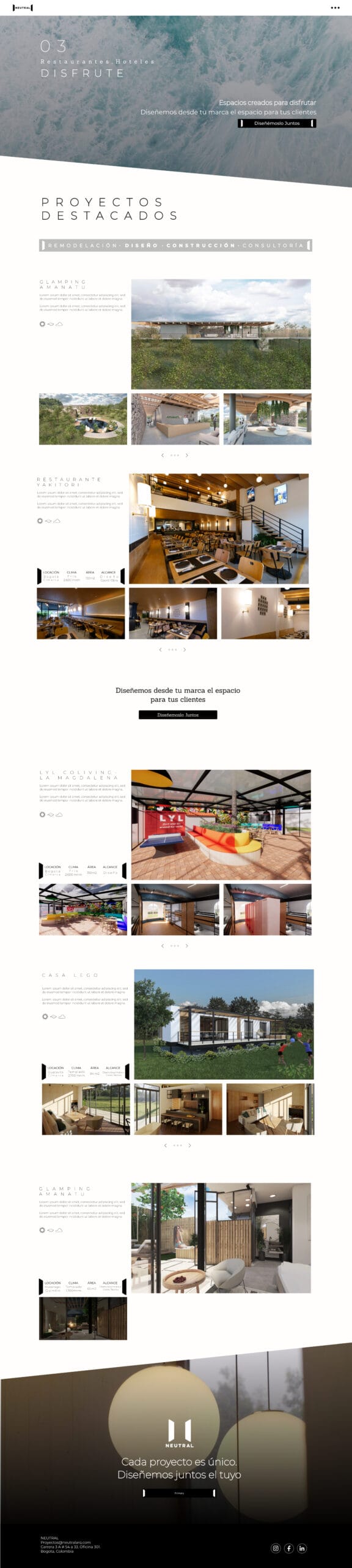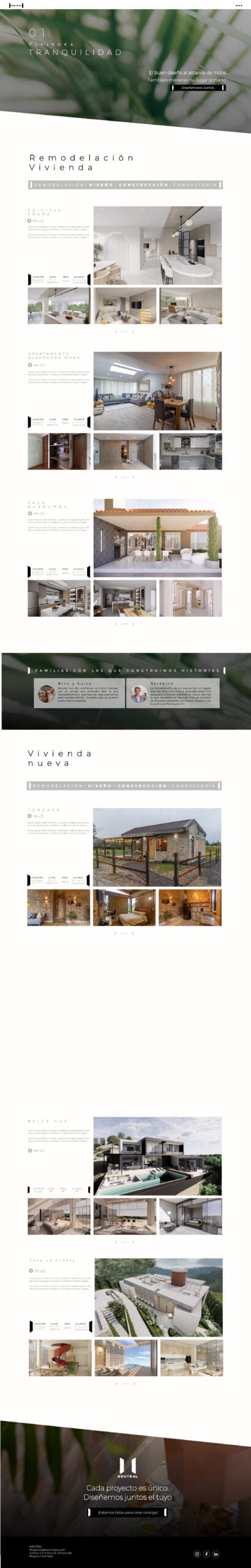 Neutral es un proyecto innovador enfocado en crear una página web para una empresa de arquitectura, diseñada para mostrar sus proyectos más emblemáticos y conectar con audiencias a nivel global.
