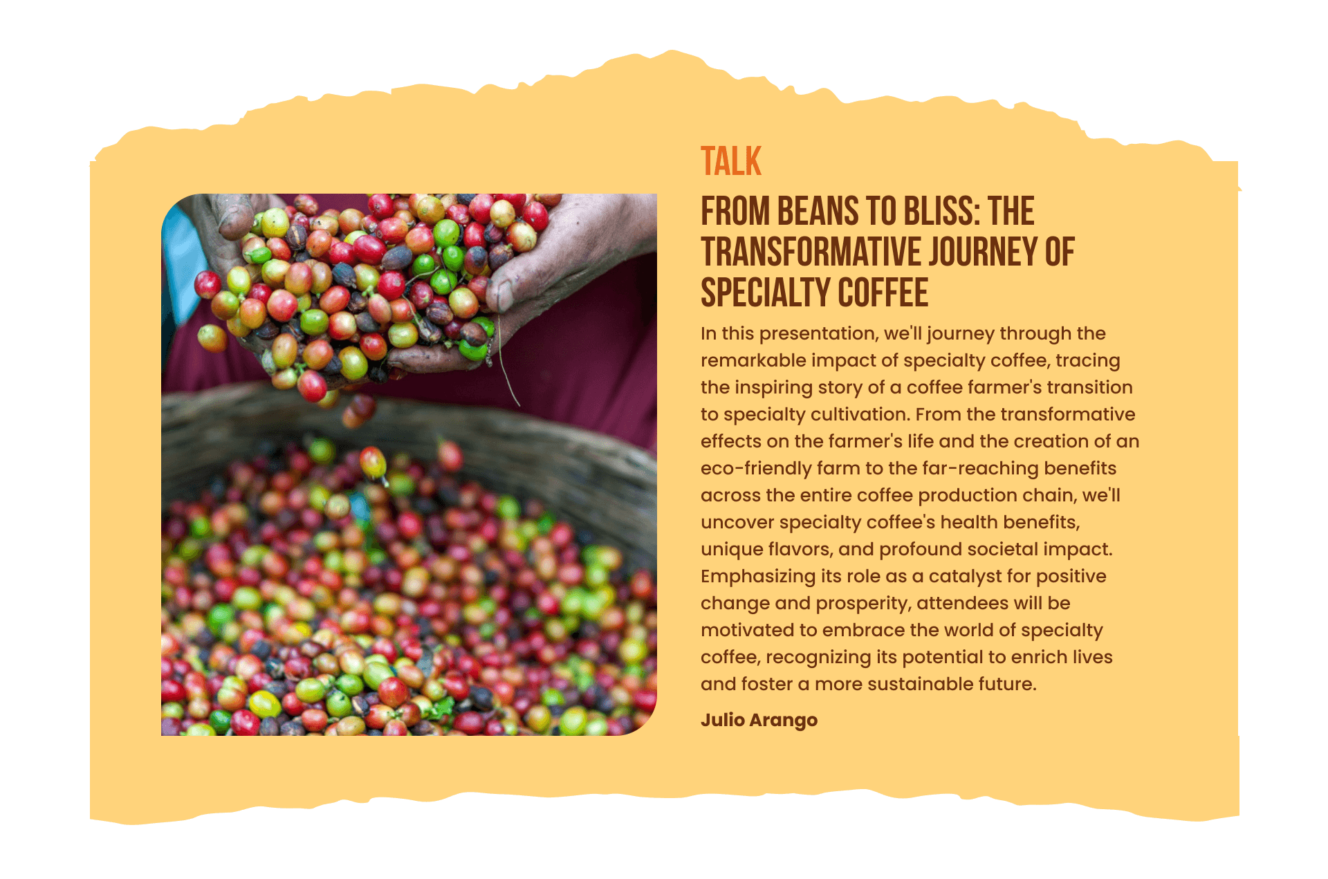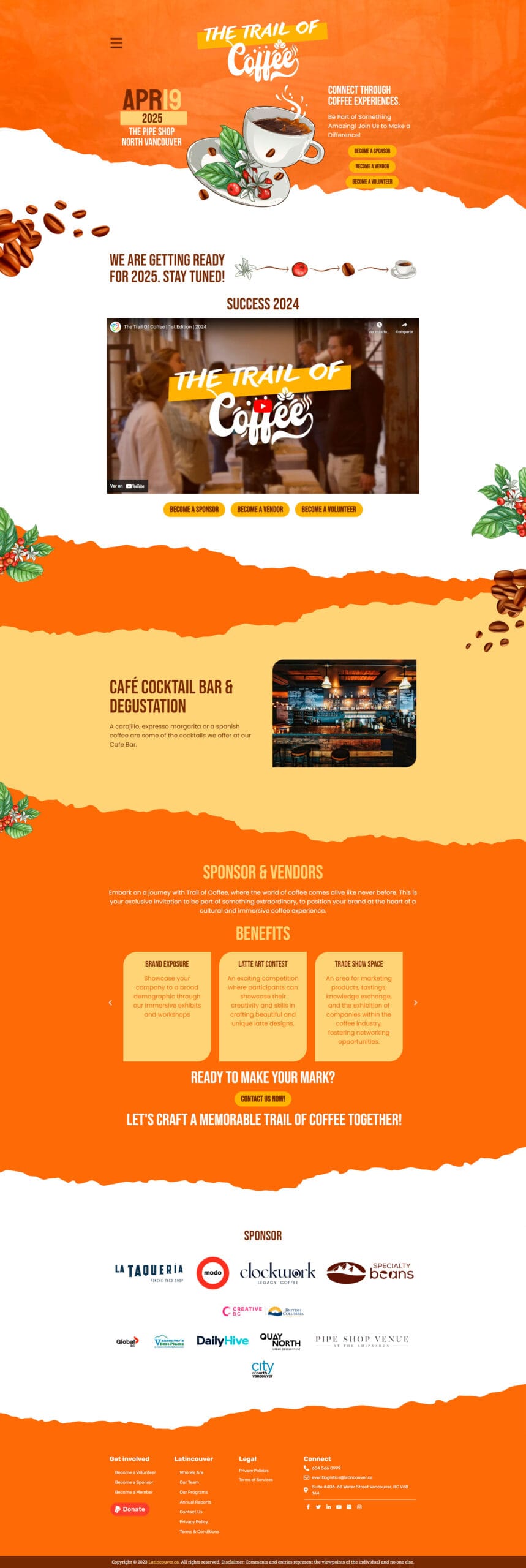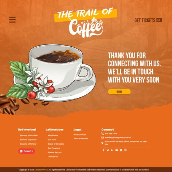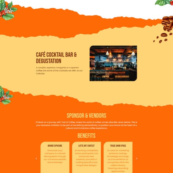 The Trail of Coffee es una landing page diseñada para celebrar el evento más esperado por los amantes del café. Este espacio digital conecta a entusiastas y expertos del café, ofreciendo una experiencia única donde se destacan las mejores variedades, tendencias y todo lo que rodea el mundo del café.